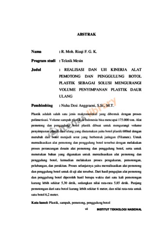 Plastik adalah salah satu jenis makromolekul yang dibentuk dengan proses polimerisasi. Volume sampah plastik di Indonesia bisa mencapai 175.000 ton. Alat pemotong dan penggulung botol plastik dibuat untuk mengurangi volume penyimpanan plastik daur ulang yang diutamakan yaitu botol plastik 600ml dengan merubah dari botol menjadi serat yang berbentuk jaringan (Filamen). Untuk merealisasikan alat pemotong dan penggulung botol tersebut dengan melakukan proses perancangan desain alat pemotong dan penggulung botol, serta untuk menetukan bahan yang digunakan untuk merealisasikan alat pemotong dan penggulung botol, kemudian melakukan proses pengukuran, pemotongan, pelubangan, dan perakitan. Proses selanjutnya yaitu merealisasikan alat pemotong dan penggulung botol untuk di uji alat tersebut. Dari hasil pengujian alat pemotong dan penggulung botol diperoleh hasil berupa waktu dari satu kali pemotongan kurang lebih sekitar 5,30 detik, sedangkan nilai rata-rata 5,85 detik. Panjang pemotongan dari satu botol kurang lebih sekitar 6 meter, dan nilai rata-rata untuk satu botol 6,2 meter. Kata kunci: Plastik, sampah, pemotong, penggulung botol