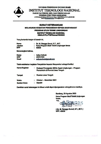 NAFISAH, AULIYA (2023) LAPORAN PKM - EVALUASI PENCAPAIAN SDGs ASPEK LINGKUNGAN – PROGRAM PEMERINTAH DI PROVINSI JAWA TENGAH. Project Report. Institut Teknologi Nasional, Bandung, Bandung.