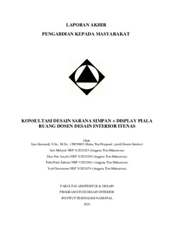 Kusnaedi, Iyus and Mulyani, Sari and Assyifa, Dian Nur and Zahrani, Febri Putri and Octavianus, Yoel (2023) LAPORAN PKM - KONSULTASI DESAIN SARANA SIMPAN + DISPLAY PIALA RUANG DOSEN DESAIN INTERIOR ITENAS. Project Report. Institut Teknologi Nasional, Bandung, Bandung.