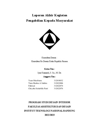 Kusnaedi, Iyus and Oktafriana, Yuan and Sakhra, Tiara Shalma and -, Fahrizal and Putri, Cheysha Salsabilla Laporan PKM - Konsultasi Desain : Konsultasi Re-Desain Kedai Republic Ramen. Project Report. Institut Teknologi Nasional, Bandung, Bandung.