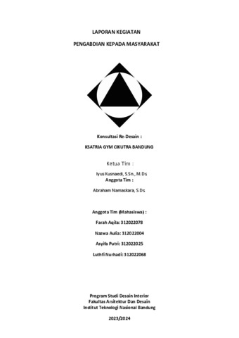 Kusnaedi, Iyus and Namaskara, Abraham and Aqila, Farah and Aulia, Nazwa and Putri, Asyifa and Nurhadi, Luthfi (2024) Laporan PKM - Konsultasi Re-Desain : KSATRIA GYM CIKUTRA BANDUNG. Project Report. Institut Teknologi Nasional, Bandung, Bandung.