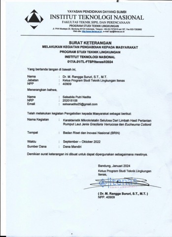 NADITA, SALSABILA PUTRI LAPORAN PKM - ISOLASI MIKROKRISTALIN SELULOSA DARI LIMBAH HASIL PERTANIAN RUMPUT LAUT JENIS GRACILARIA VERRUCOSA DAN EUCHEUMA COTTONII. Project Report. Institut Teknologi Nasional, Bandung, Bandung.