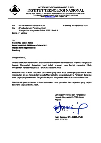 Anita, Juarni and Kustianingrum, Dwi and Fitriany, Detty and Azka T, Fariz and Rachimatus S, Aliya Nur and Amalia, Putri and Kusumawardani, Dinda Lutfia and Amabel, Stela and Ruchliadi, Deni (2023) LAPORAN PKM - RANCANGAN SITE PLAN DAN GEDUNG SEKOLAH DI PONDOK PESANTREN ULUL ALBAB BOJONGKONENG, KABUPATEN BANDUNG. Project Report. Institut Teknologi Nasional Bandung.