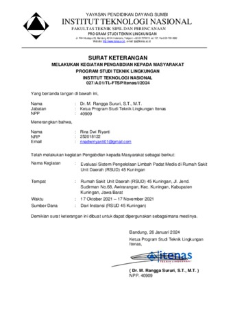 Riyanti, Rina Dwi (2024) LAPORAN PKM - EVALUASI SISTEM PENGELOLAAN LIMBAH PADAT MEDIS DI RSUD 45 KUNINGAN. Project Report. Institut Teknologi Nasional, Bandung, Bandung.